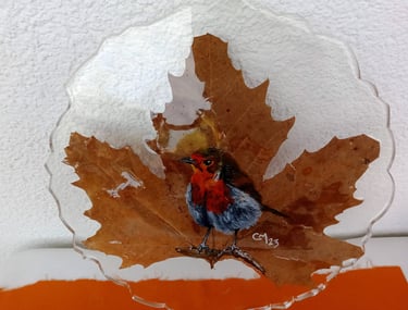 Realizziamo opere d'arte su foglie naturali raccolte a mano nei boschi.