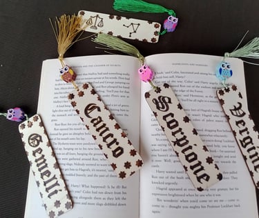 Segnalibro in legno pirografati, con frase a tema oppure personalizzati con il segno zodiacale